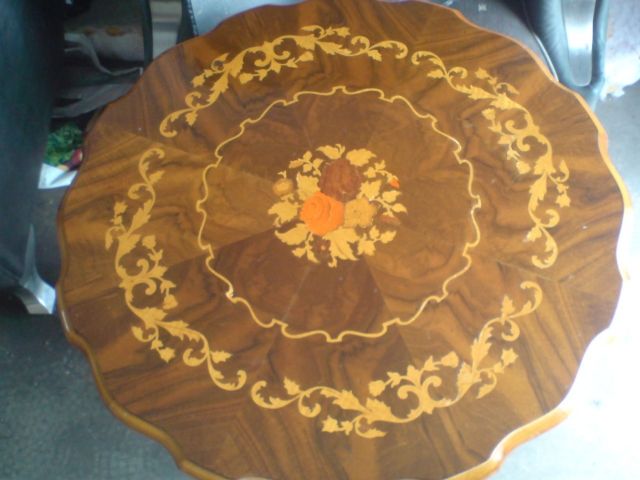 Seltener Tisch mit Intarsienarbeit , Steht auf einem Mittelfuß, Durchmesser ca. 70 cm, Höhe ca. 63 cm